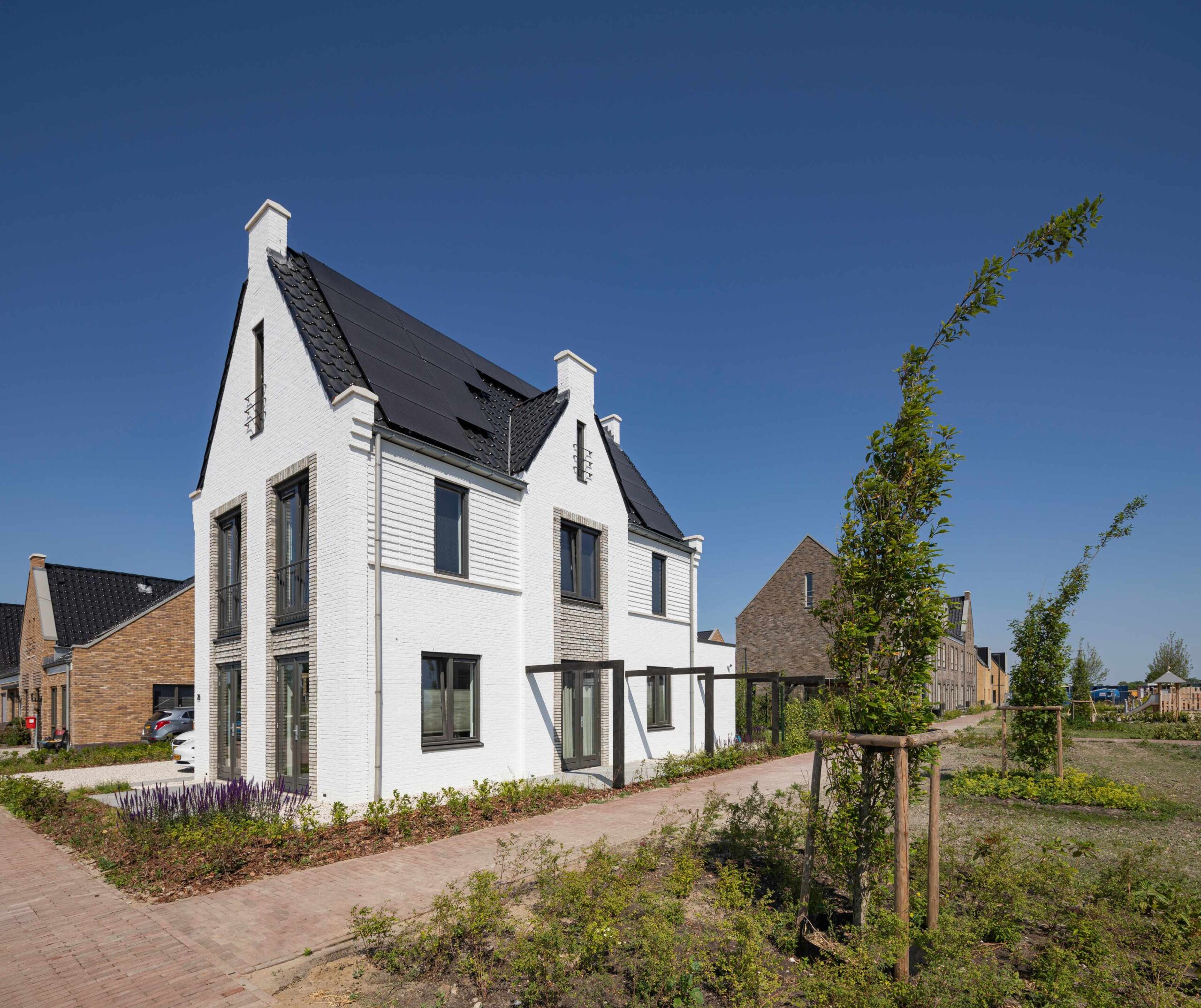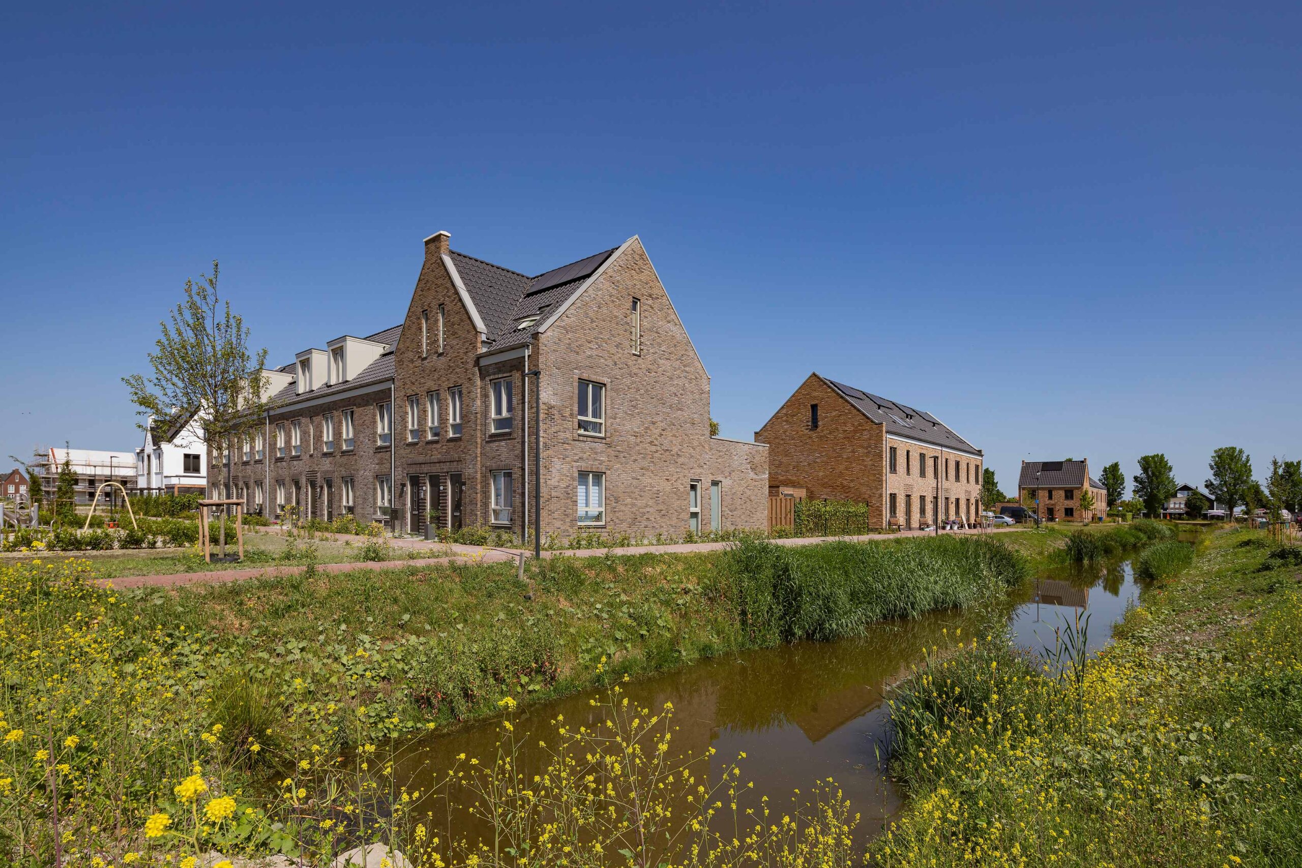 In de Middenbeemster hebben we 82 koop- en sociale huurwoningen opgeleverd. Dit zijn diverse woningen met fraaie details, van vrijstaand, tweekappers, rijwoningen tot semi-bungalows. Alle woningen zijn gasloos en aangesloten op de stadsverwarming.